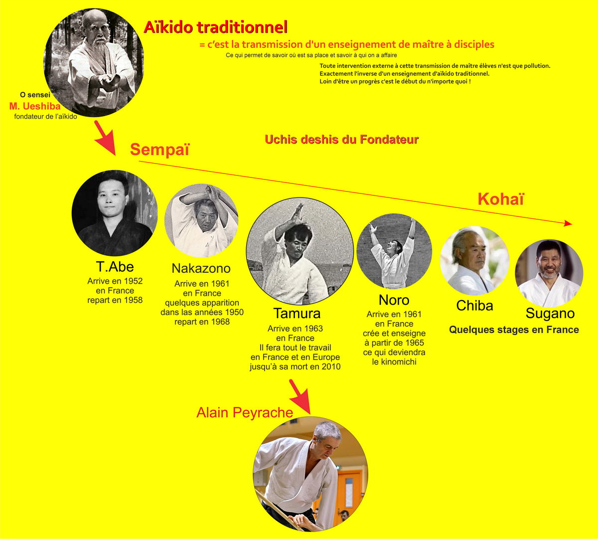 Filiation du fondateur de l'aïkido à Alain Peyrache sensei
